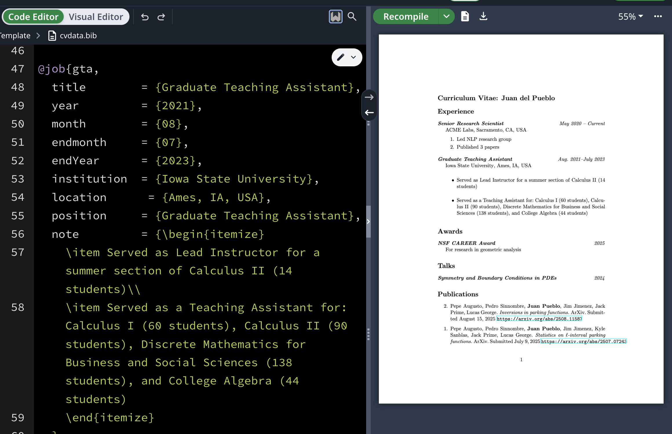 Annoyed that all my personal data never changes when personalizing CV/Resume, only the styles.